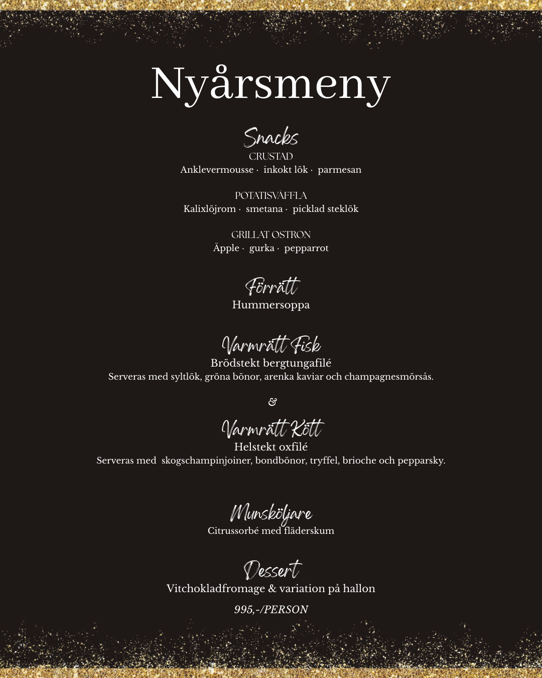 Ring in det nya året med en meny skapad för att göra kvällen riktigt minnesvärd! Vi bjuder in till en nyårsafton där havet, råvarorna och hantverket står i centrum.